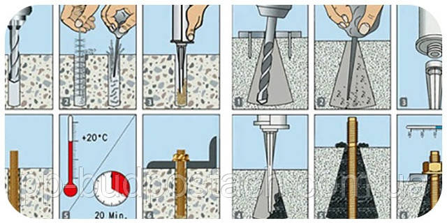 Застосовуються кілька способів закріплення або АНКЕРУВАННЯ кріпильної деталі в матеріалі підстави, вибір яких визначає конструкцію і матеріал кріпильної деталі, а в кінцевому підсумку - величину і характер корисних навантажень для конкретного матеріалу підстави. Анкеровка тертям - самий распространненй спосіб кріплення. Він полягає в тому, що зовнішня поверхня розпірною частини кріпильної деталі притискається до стінки отвору, виконаного в основному матеріалі, створюючи силу тертя, утримуючу анкер (дюбель) від висмикування.
