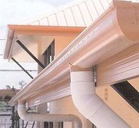 Пластикова система водостоків для покрівлі недавно з'явилася на ринку, але вже з успіхом витісняє свої металеві аналоги. В даному випадку всі складові конструкції виконуються з полівінілхлориду (ПВХ). За деякими експлуатаційними характеристиками ПВХ-вироби навіть обганяють метал, і, звичайно, величезною перевагою пластику є його економічна доступність. Серед інших особливостей пластикових труб варто виділити: стійкість до УФ-випромінювання, корозії, дії води і хімічно агресивних середовищ.