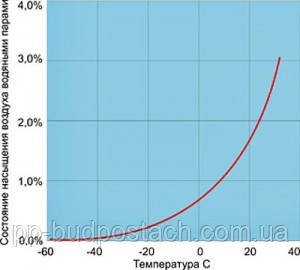 На наведеній діаграмі, Рис.1., представлено максимально можливий вміст водяної пари в повітрі в залежності від температури.