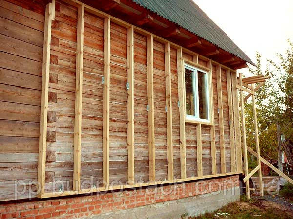 Обрешітка. Такий спосіб утеплення конструкцій, зокрема, дерев'яного будинку передбачає необхідність монтажу обрешітки. Спочатку фіксується поперечна решетування, яка набивається з металевого профілю поперек колод і з дотриманням кроку в 80 див. Каркас контррейки створюється аналогічним чином з таким же кроком, але вже уздовж колод. Конструкція виконує функцію забезпечення вентиляції, видалення зайвої пари і запобігання виникнення конденсату.