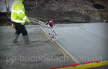 Третій етап ― вирівнювання бетонної маси. При використанні досить рідкого розчину, він лягає досить рівно, але довго сохне. При бетонуванні плитного фундаменту, розчин вирівнюється за попередньо встановленим напрямних за допомогою віброрейки.