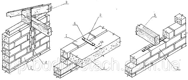 Схеми пристрою перемичок в прорізах внутрішніх і зовнішніх стін, приклади анкерування конструкцій в стінах або перекриттях наведена на рис.4.1: