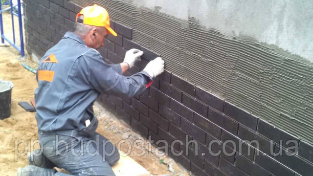 Мокрий спосіб кріплення. Використовується звичайна фасадна плитка і клей.